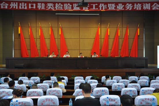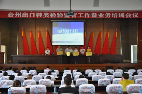 为了提升台州出口鞋类产品质量安全水平,全面推开出口鞋类检测备案工作,2013年5月21日,台州检验检疫局出口鞋类检验监管工作暨业务培训会议在温岭召开。温岭鞋革业商会负责人、台州辖区内近400家出口鞋类企业负责人和质量部门经理参加了会议。 会上,台州宝利特鞋业、斯美特鞋业、喜得宝鞋业、荣时集团被授予“3A级出口诚信企业”荣誉称号;台州一休鞋业、石林鞋业、腾飞鞋业、成奇鞋业新增为“商检一类企业”并授牌。